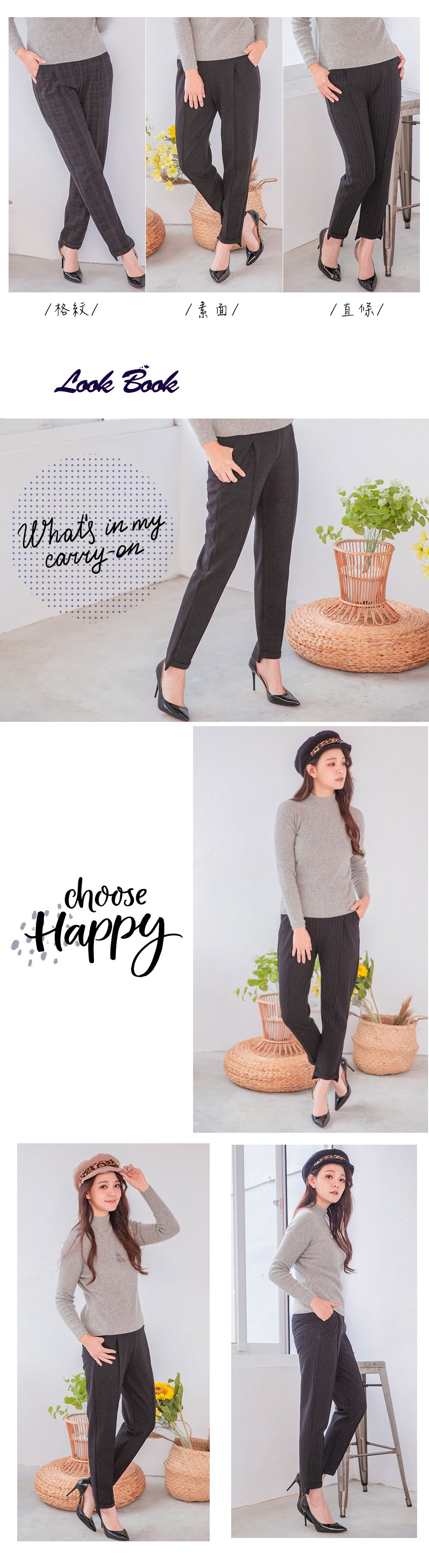 .顏色:素面、格紋、直條